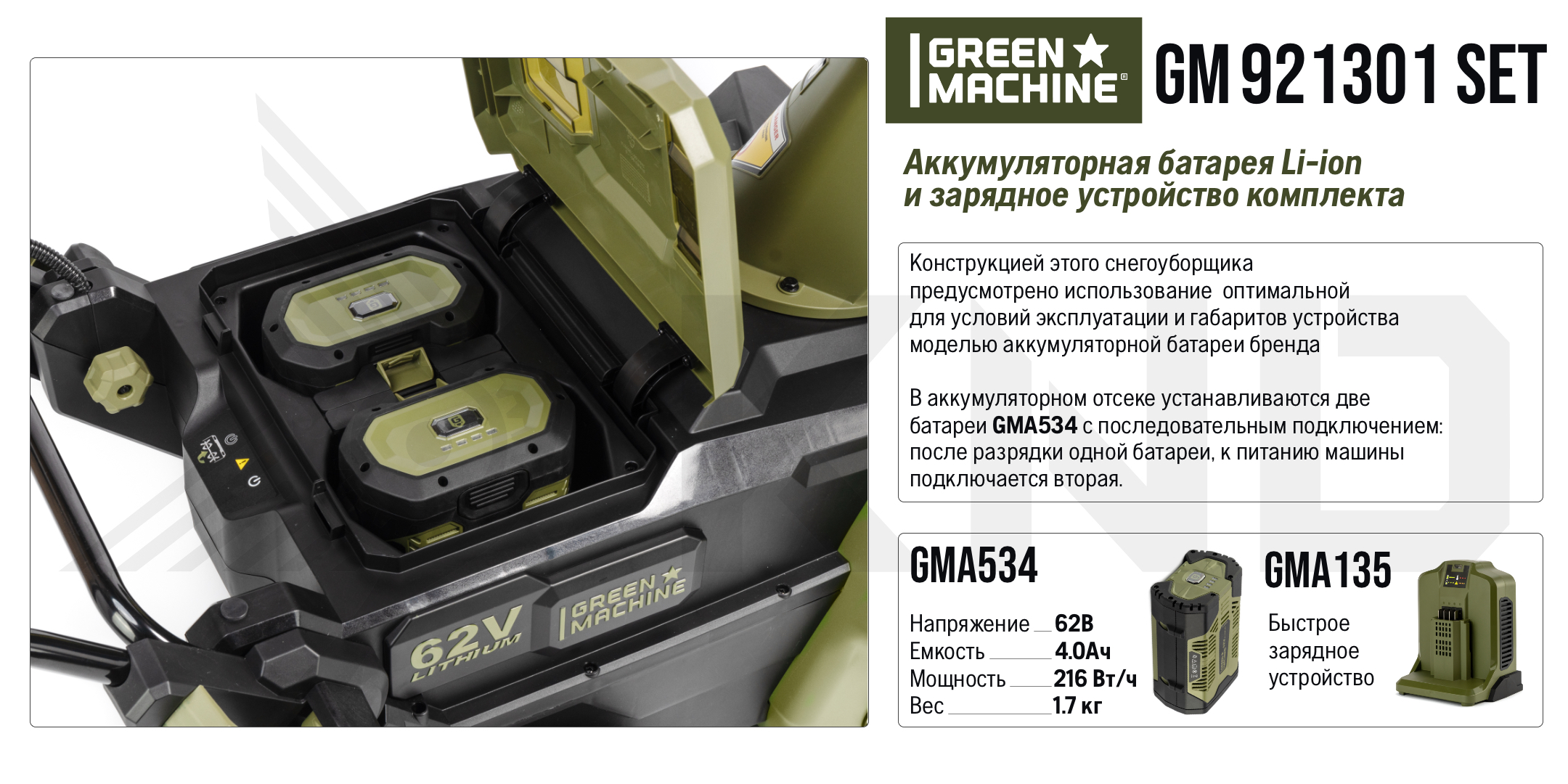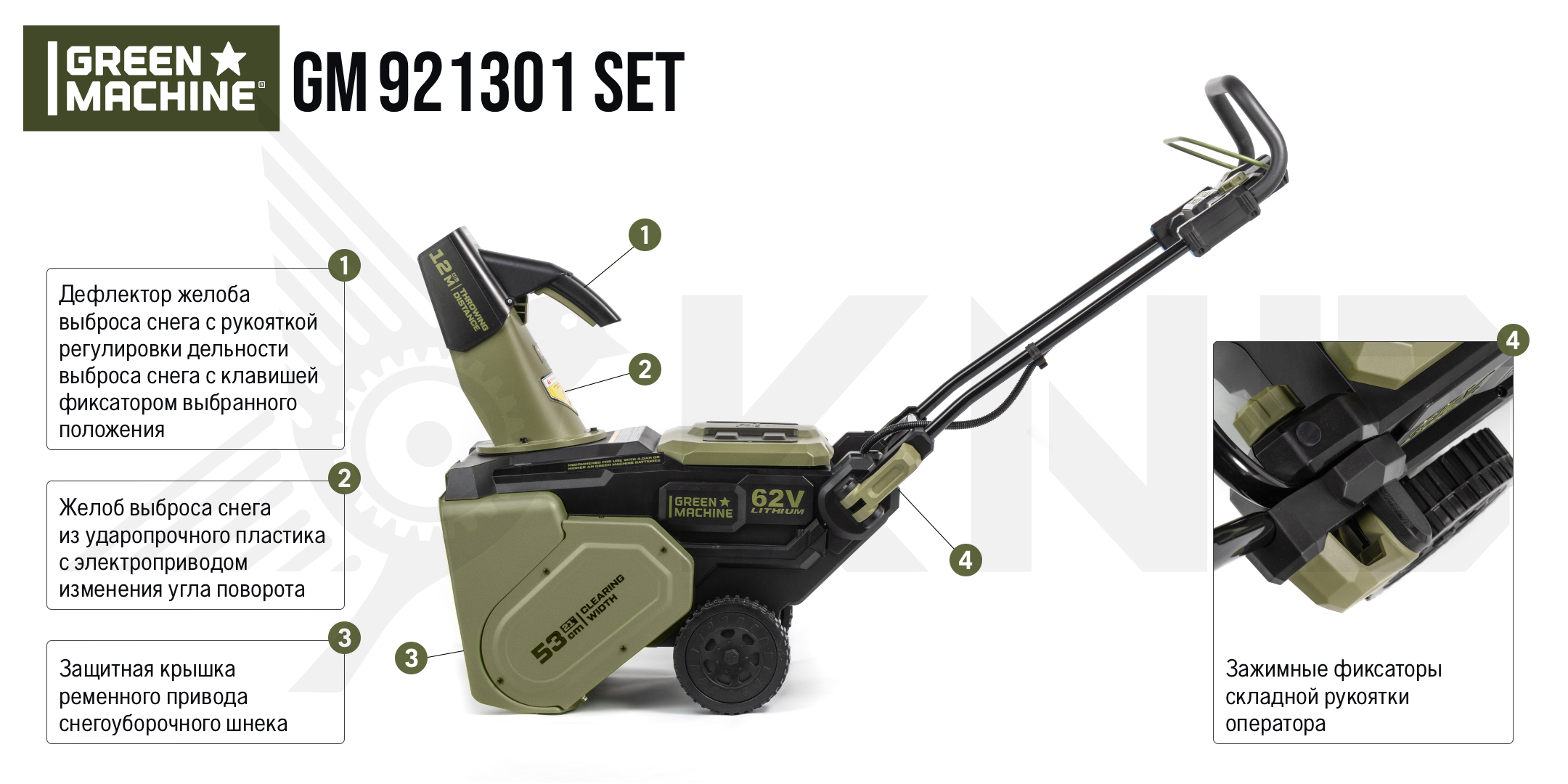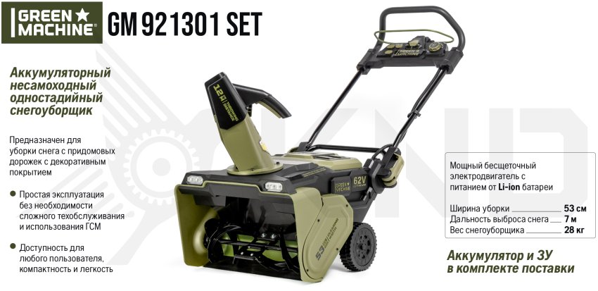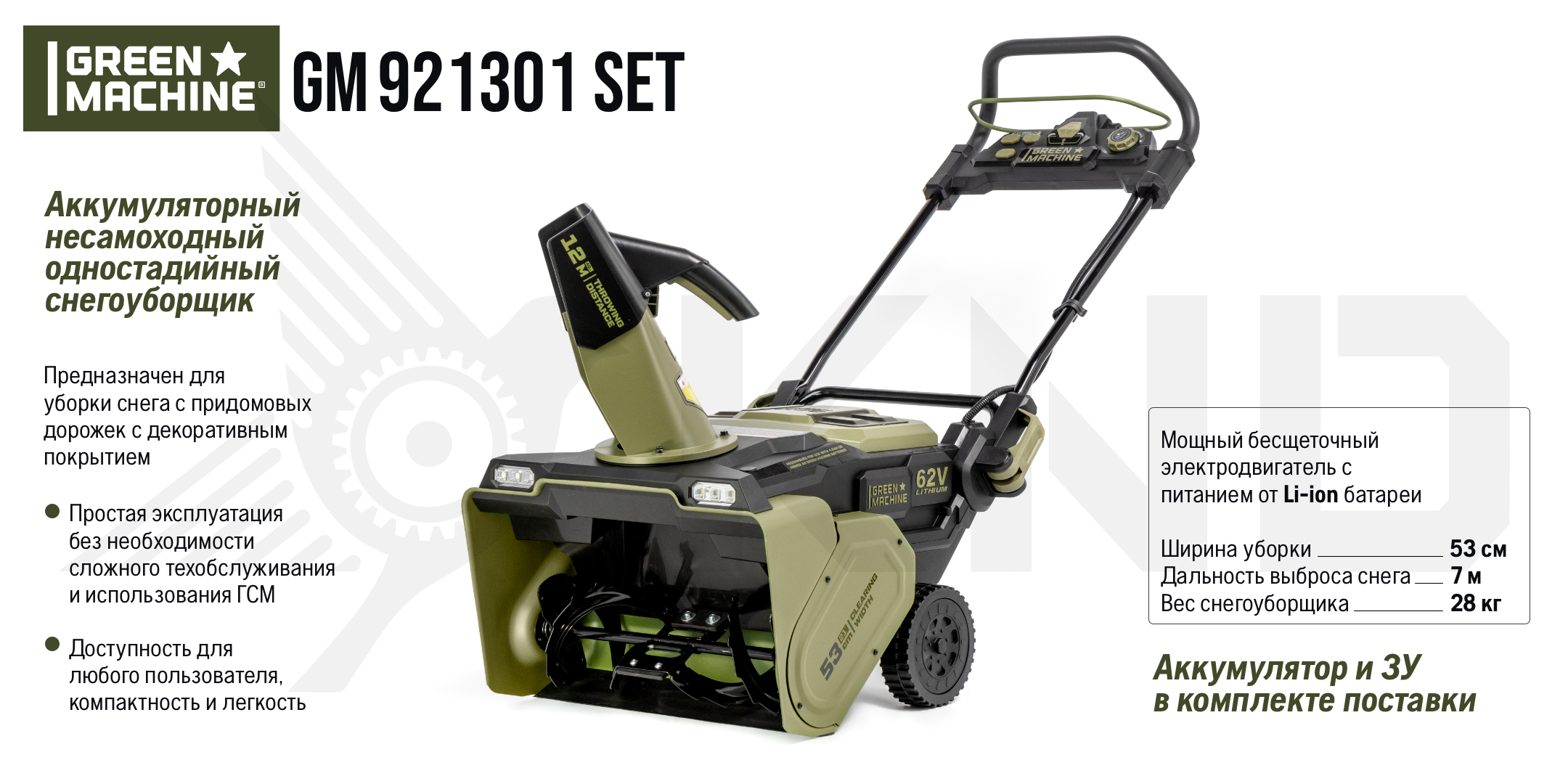 Снегоуборщик аккумуляторный GREEN MACHINE GM921301 SET с АКБ 4 Ач и ЗУ