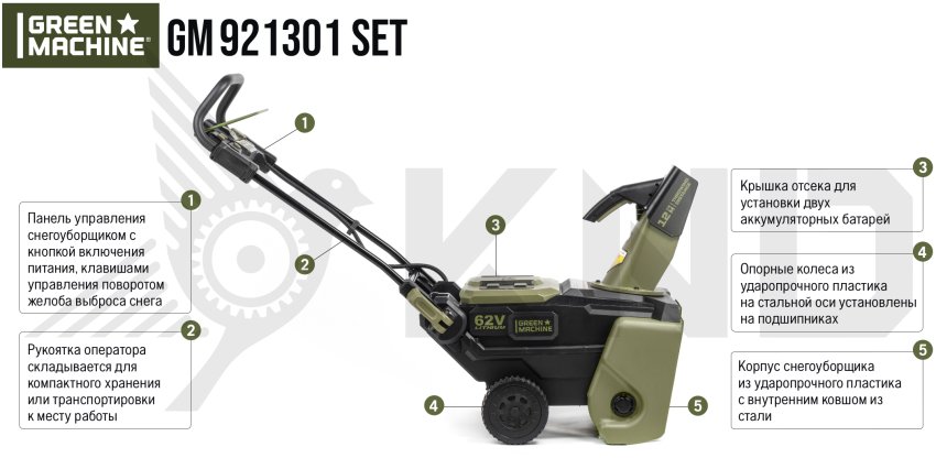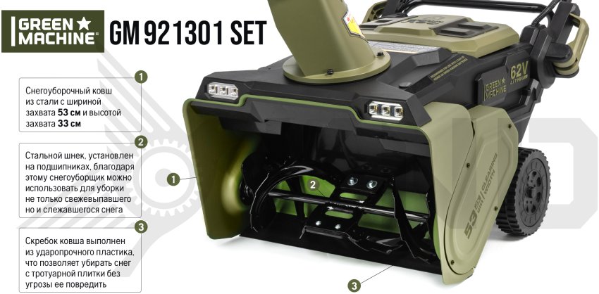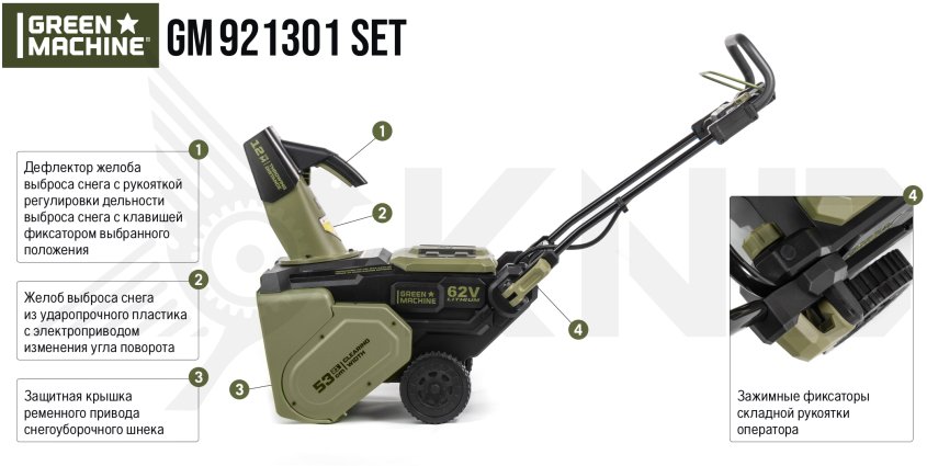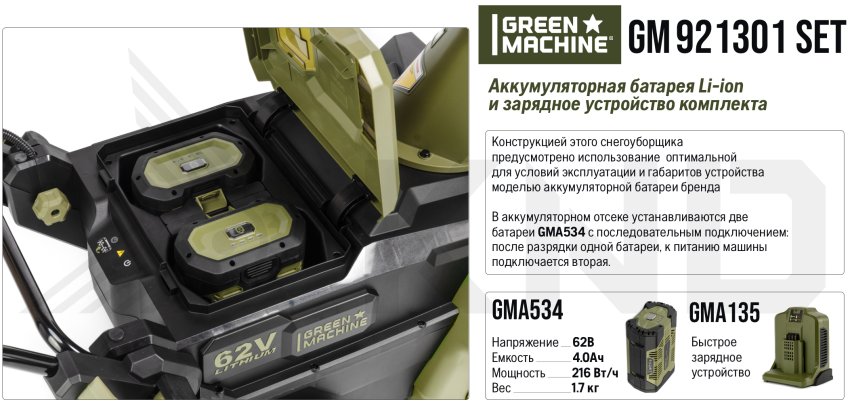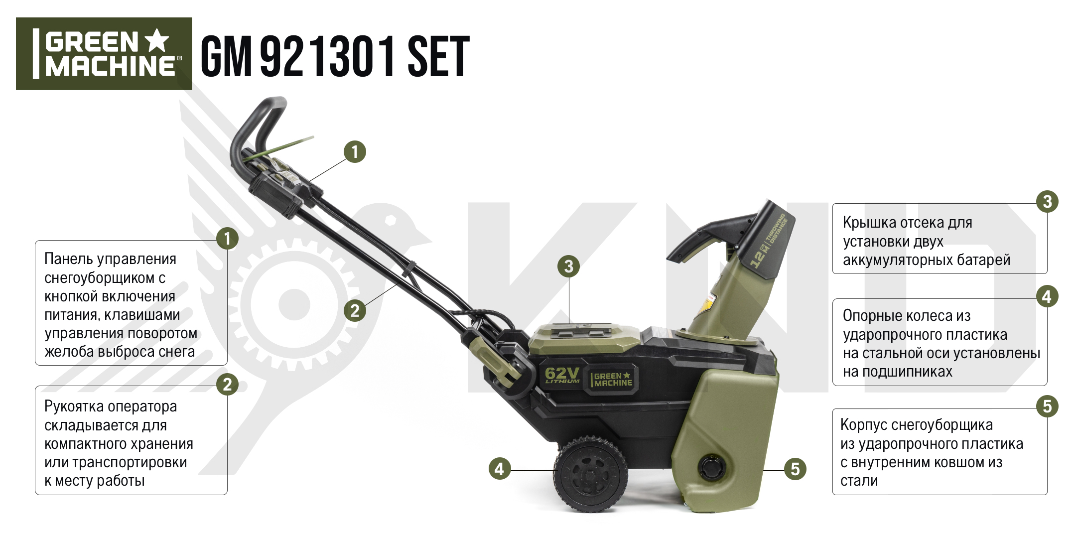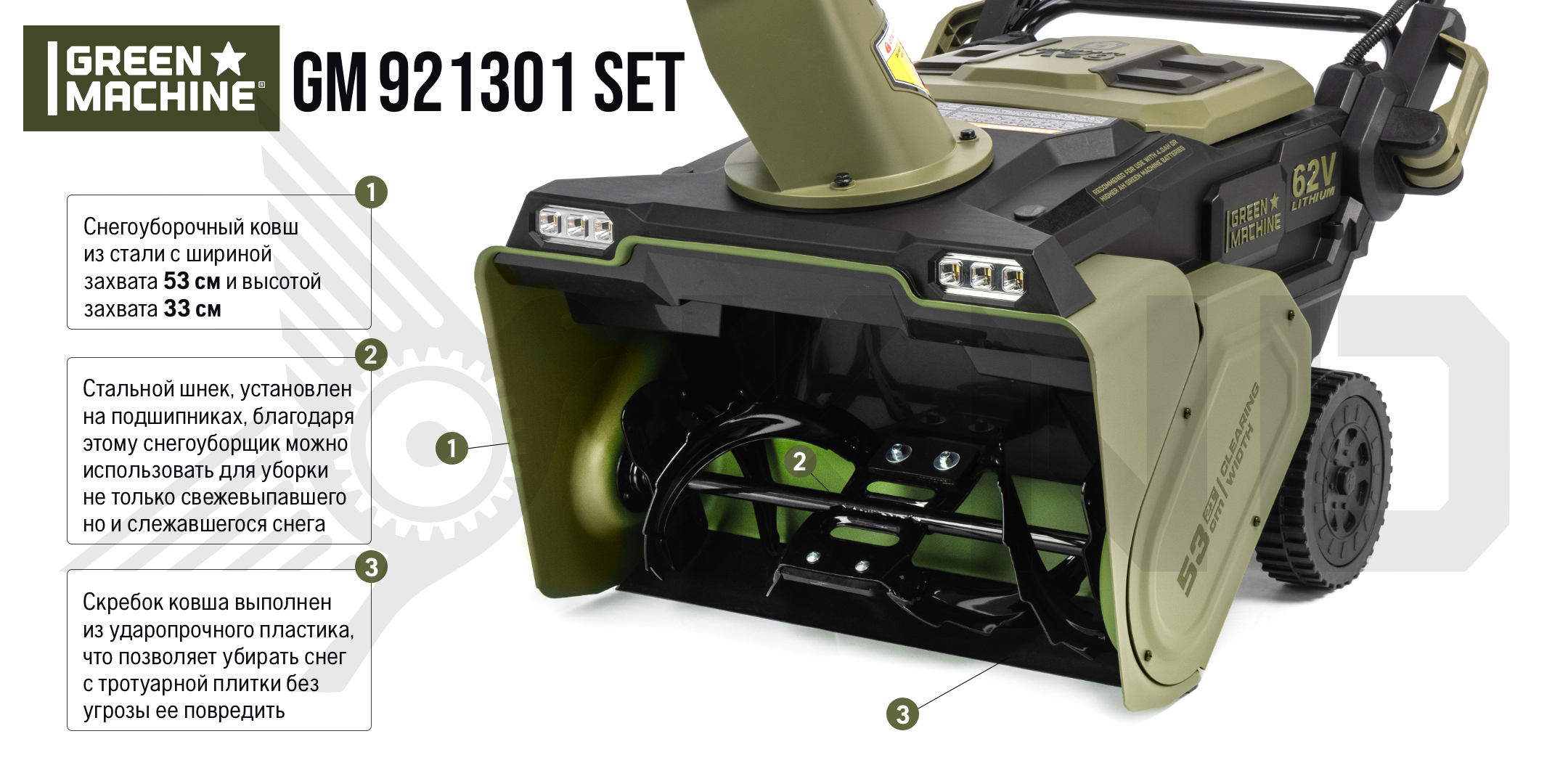 Снегоуборщик аккумуляторный GREEN MACHINE GM921301 SET с АКБ 4 Ач и ЗУ