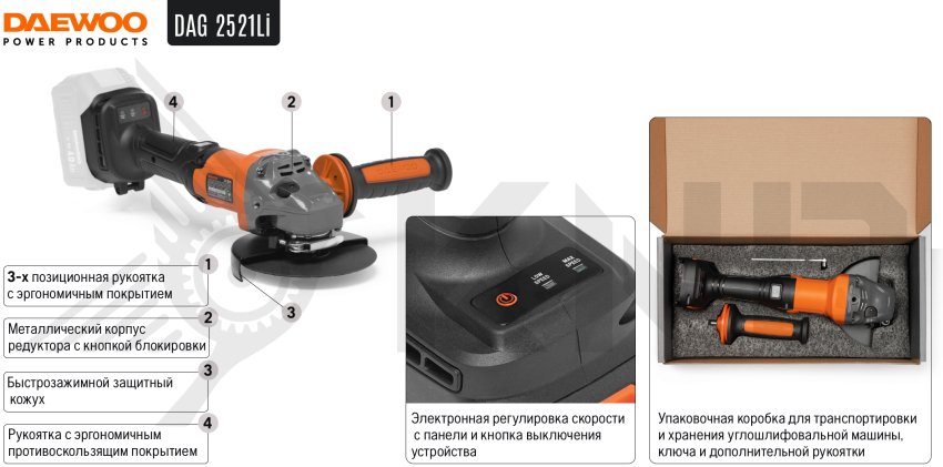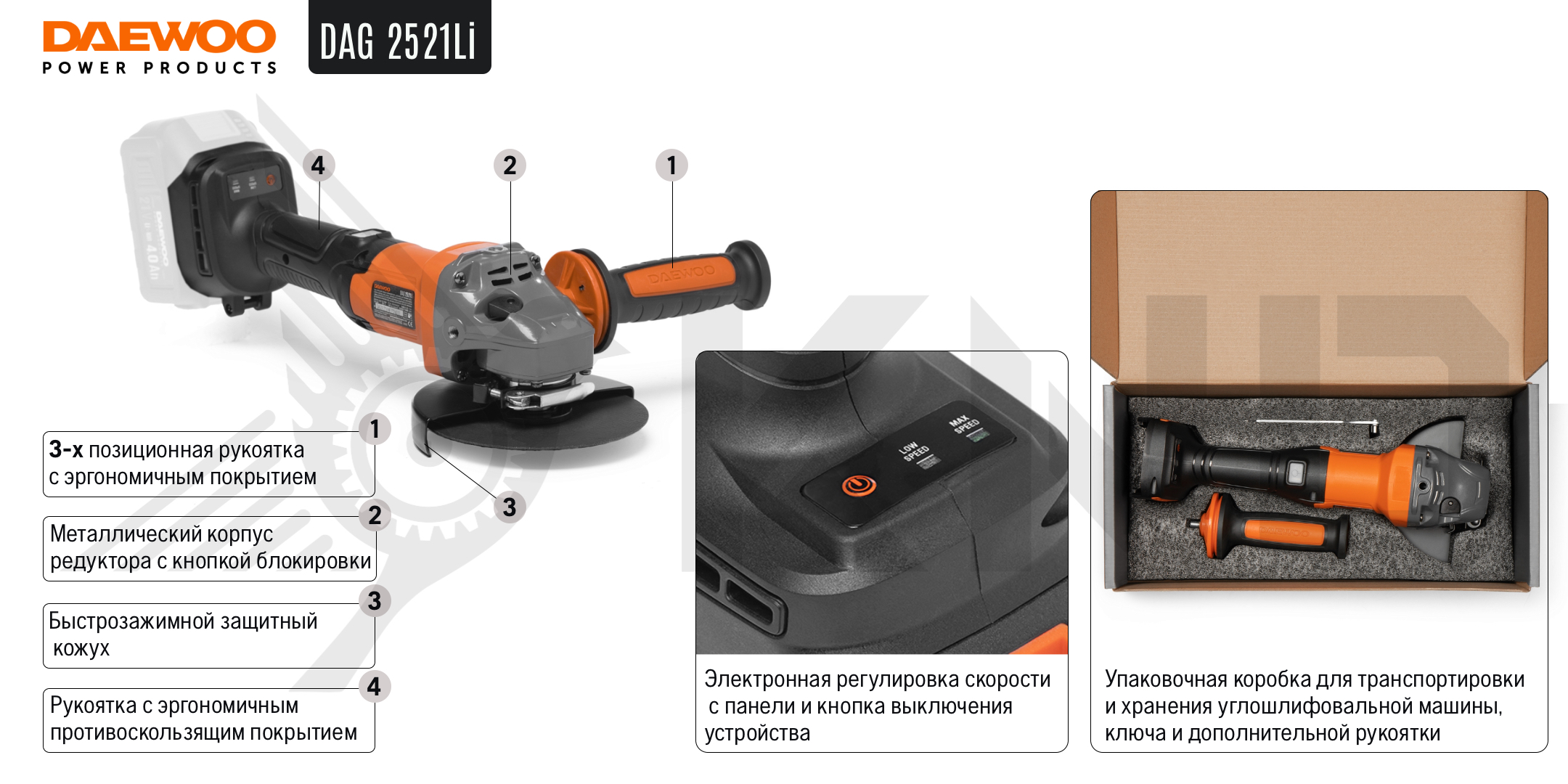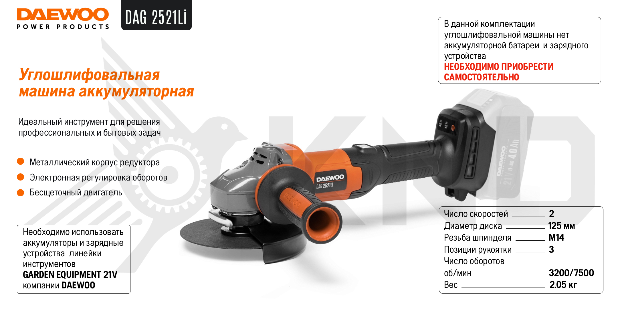 Угловая шлифмашина аккумуляторная DAEWOO DAG 2521Li без АКБ и ЗУ